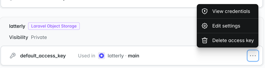 from the main dashboard. Then click the ”…” icon next to the bucket and then click “View credentials”.