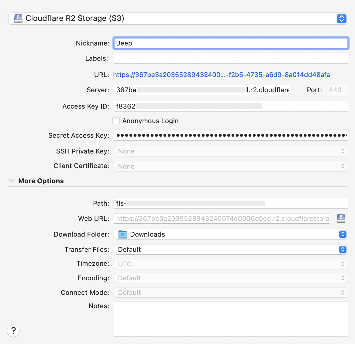 - Open Cyberduck, select ”+” in the bottom left-hand corner to create a new bookmark, and select “Cloudflare R2 Storage (S3)” as the connection type. If this is your first time using the Cloudflare R2 Storage connection, you may need to add it from
